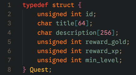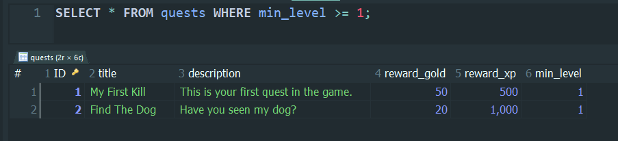 Let's start by structuring the data. Given the quest table example, we'd probably want the structure of a row to look something like this: